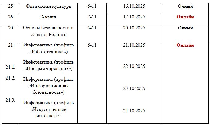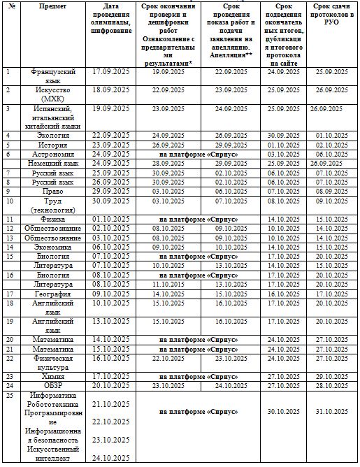 Сроки проведения организационных мероприятий школьного этапа Олимпиады в 2025-2026 учебном году