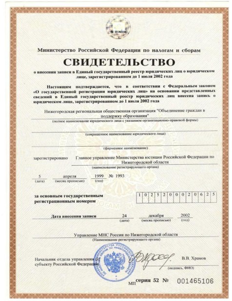 Нижегородская региональная общественная организация "Объединение граждан в поддержку образования"