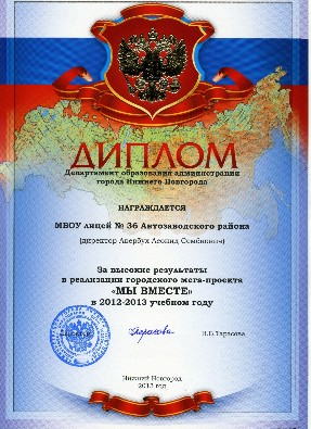 2013 г. - вошел в число лидеров среди 500 лучших школ России