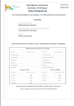 2017 г. - вошел в число лидеров среди 100 лучших школ России физико-математического профиля.