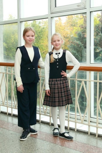 С формой  и у девушек, и у юношей допускаются однотонные жилеты.