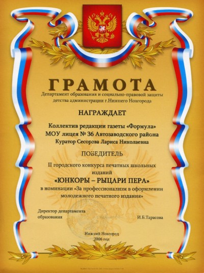 Состав членов редколлегии каждый год меняется. Ребята приобретают неоценимый опыт. Многие лицеисты за более чем десять лет приняли участие в выпусках любимой газеты. ФорМуЛа неоднократно участвовала в конкурсах школьных СМИ.