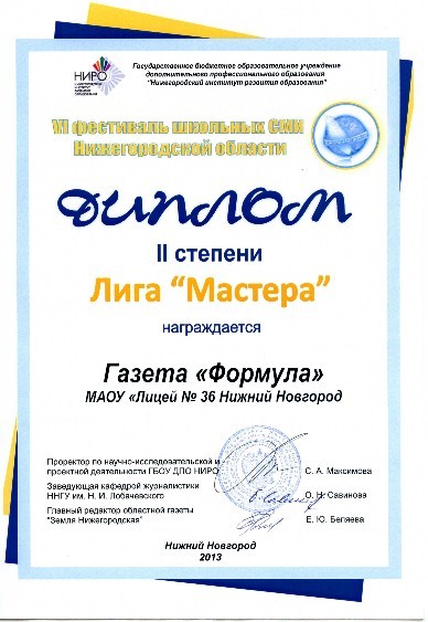 Состав членов редколлегии каждый год меняется. Ребята приобретают неоценимый опыт. Многие лицеисты за более чем десять лет приняли участие в выпусках любимой газеты. ФорМуЛа неоднократно участвовала в конкурсах школьных СМИ.